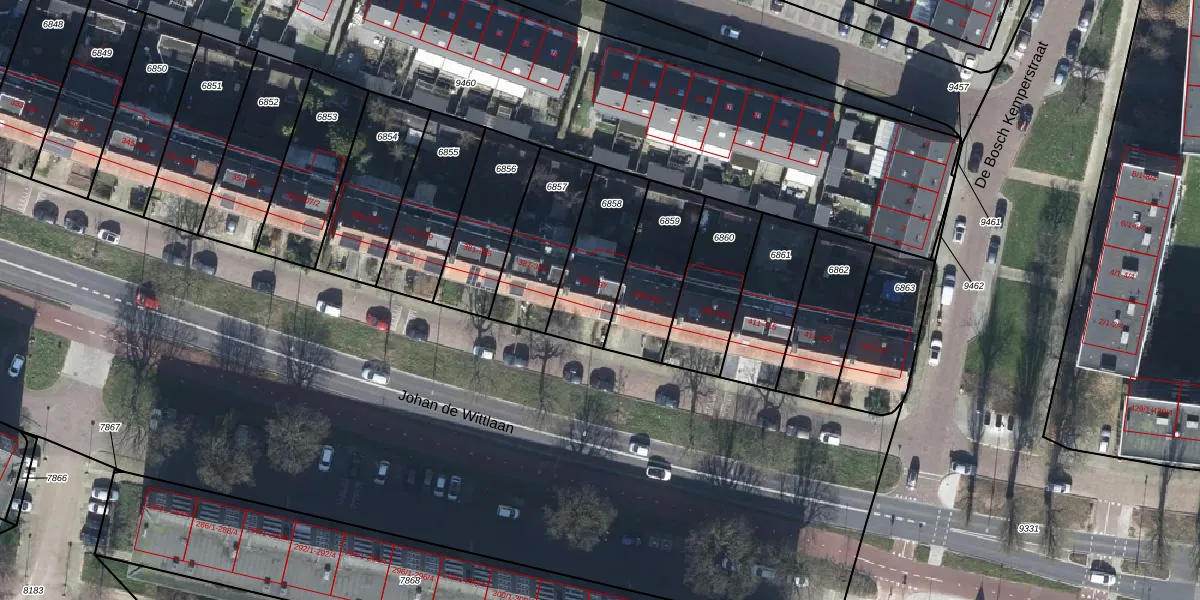 Johan de Wittlaan 397 is gelegen op kadastraal perceel AHM01Q6858. Deze kadastrale aanduiding is uniek en wordt gebruikt door het Kadaster om eigendomsrechten en andere zakelijke rechten vast te leggen. Het perceel maakt onderdeel uit van de kadastrale gemeente Arnhem.