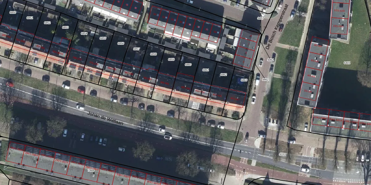 Johan de Wittlaan 409 is gelegen op kadastraal perceel AHM01Q6860. Deze kadastrale aanduiding is uniek en wordt gebruikt door het Kadaster om eigendomsrechten en andere zakelijke rechten vast te leggen. Het perceel maakt onderdeel uit van de kadastrale gemeente Arnhem.