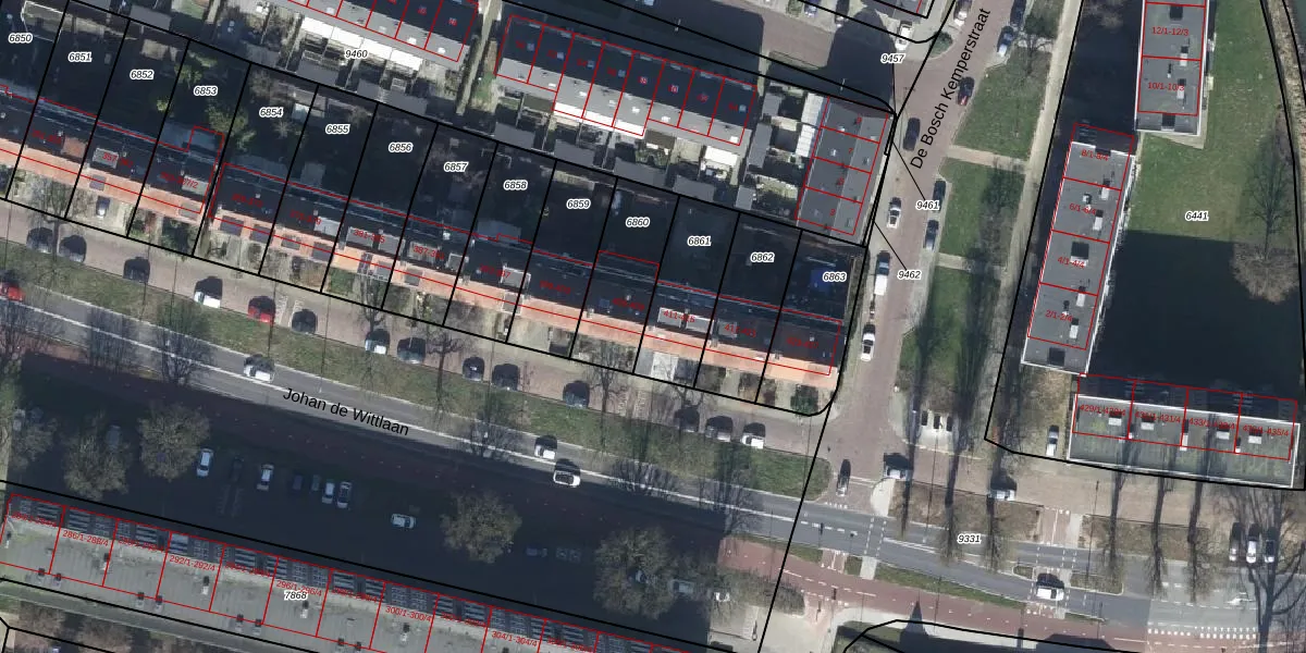 Johan de Wittlaan 411 is gelegen op kadastraal perceel AHM01Q6861. Deze kadastrale aanduiding is uniek en wordt gebruikt door het Kadaster om eigendomsrechten en andere zakelijke rechten vast te leggen. Het perceel maakt onderdeel uit van de kadastrale gemeente Arnhem.