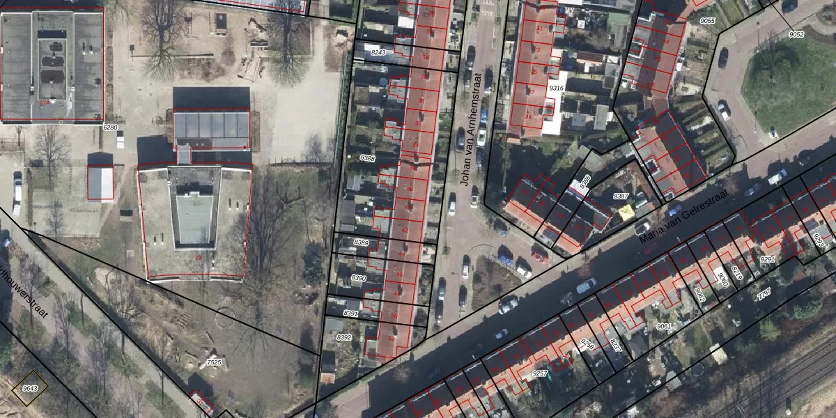 Johan van Arnhemstraat 40 is gelegen op kadastraal perceel AHM01Q8388. Deze kadastrale aanduiding is uniek en wordt gebruikt door het Kadaster om eigendomsrechten en andere zakelijke rechten vast te leggen. Het perceel maakt onderdeel uit van de kadastrale gemeente Arnhem.
