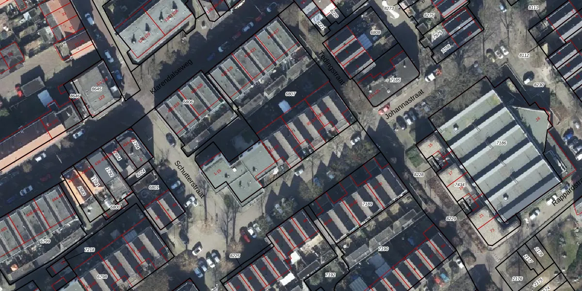 Het perceel waarop Johannastraat 93 staat heeft een oppervlakte van 1730 m². Dit is een zeer groot perceel. De perceeloppervlakte wordt geregistreerd door het Kadaster. Gedetailleerde informatie over de maten van dit perceel kunt u vinden in het rapport Kadastrale kaart met maatvoering van Johannastraat 93.