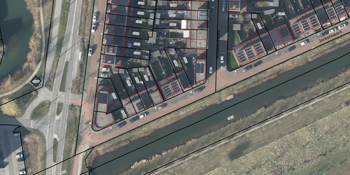 Jonkerwaard 13 is gelegen op kadastraal perceel AHM05AF2553. Deze kadastrale aanduiding is uniek en wordt gebruikt door het Kadaster om eigendomsrechten en andere zakelijke rechten vast te leggen. Het perceel maakt onderdeel uit van de kadastrale gemeente Arnhem.