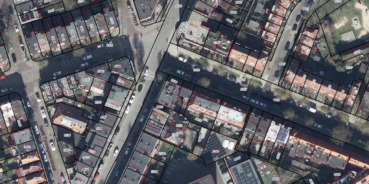 Gebruik de zoekbalk of klik op een perceel voor informatie over de adressen binnen dit perceel.
