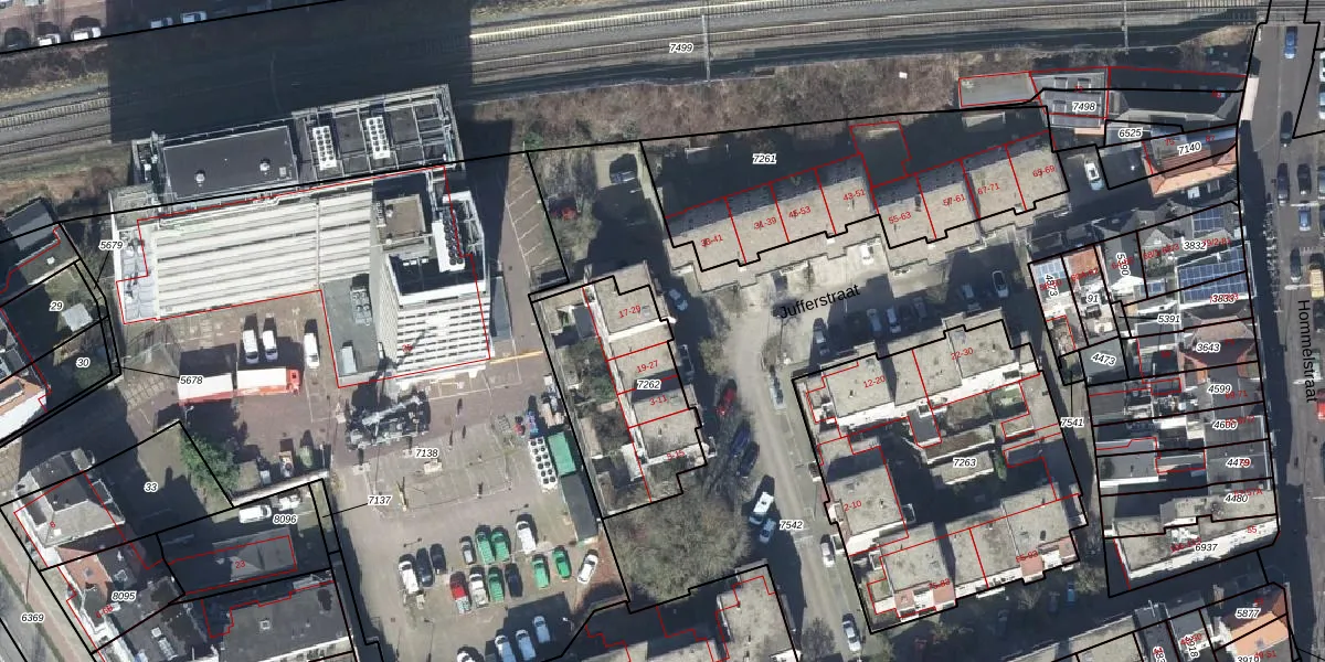 Het perceel waarop Jufferstraat 17 staat heeft een oppervlakte van 600 m². Dit is een groot perceel. De perceeloppervlakte wordt geregistreerd door het Kadaster. Gedetailleerde informatie over de maten van dit perceel kunt u vinden in het rapport Kadastrale kaart met maatvoering van Jufferstraat 17.