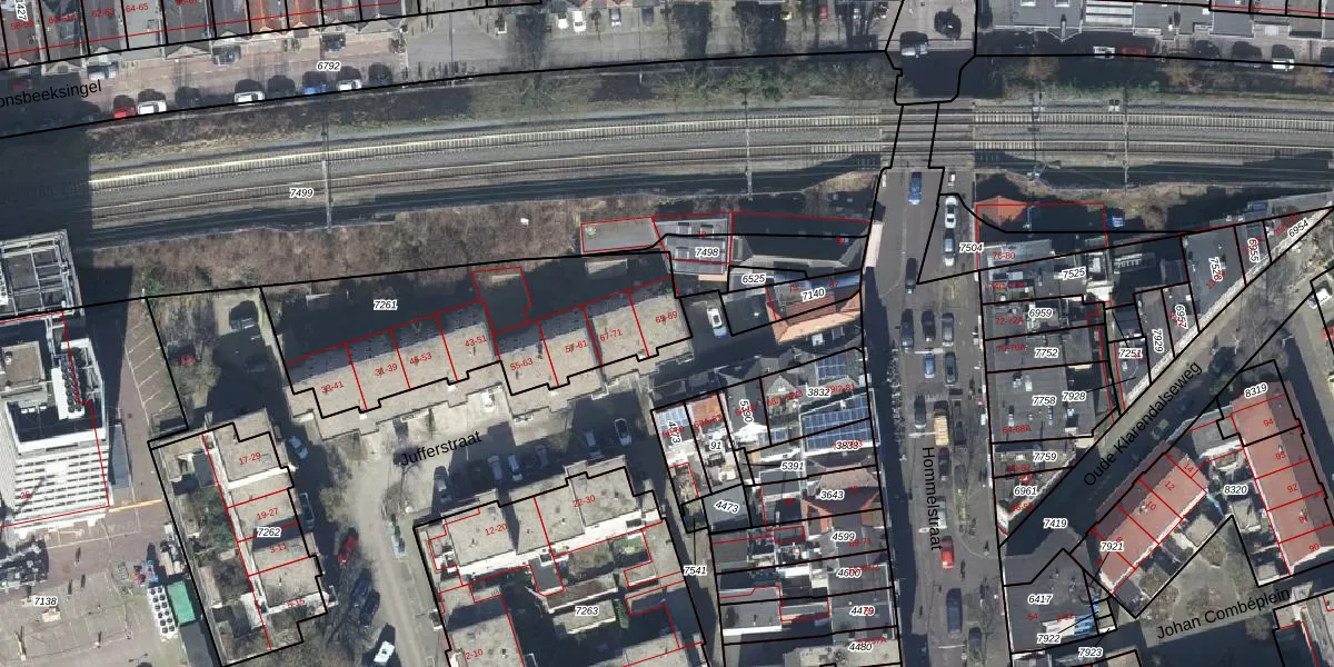 Het perceel waarop Jufferstraat 65 staat heeft een oppervlakte van 985 m². Dit is een groot perceel. De perceeloppervlakte wordt geregistreerd door het Kadaster. Gedetailleerde informatie over de maten van dit perceel kunt u vinden in het rapport Kadastrale kaart met maatvoering van Jufferstraat 65.