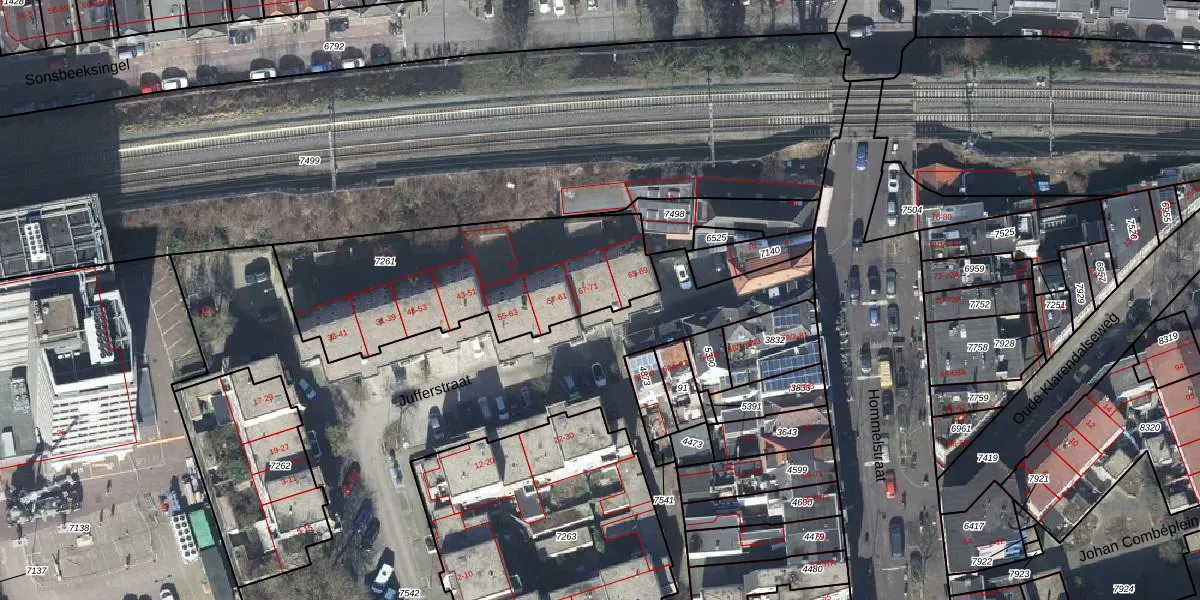Het perceel waarop Jufferstraat 67 staat heeft een oppervlakte van 985 m². Dit is een groot perceel. De perceeloppervlakte wordt geregistreerd door het Kadaster. Gedetailleerde informatie over de maten van dit perceel kunt u vinden in het rapport Kadastrale kaart met maatvoering van Jufferstraat 67.