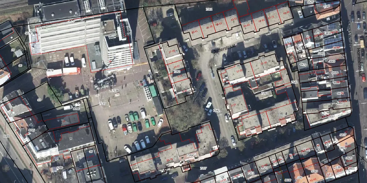 Het perceel waarop Jufferstraat 9 staat heeft een oppervlakte van 600 m². Dit is een groot perceel. De perceeloppervlakte wordt geregistreerd door het Kadaster. Gedetailleerde informatie over de maten van dit perceel kunt u vinden in het rapport Kadastrale kaart met maatvoering van Jufferstraat 9.