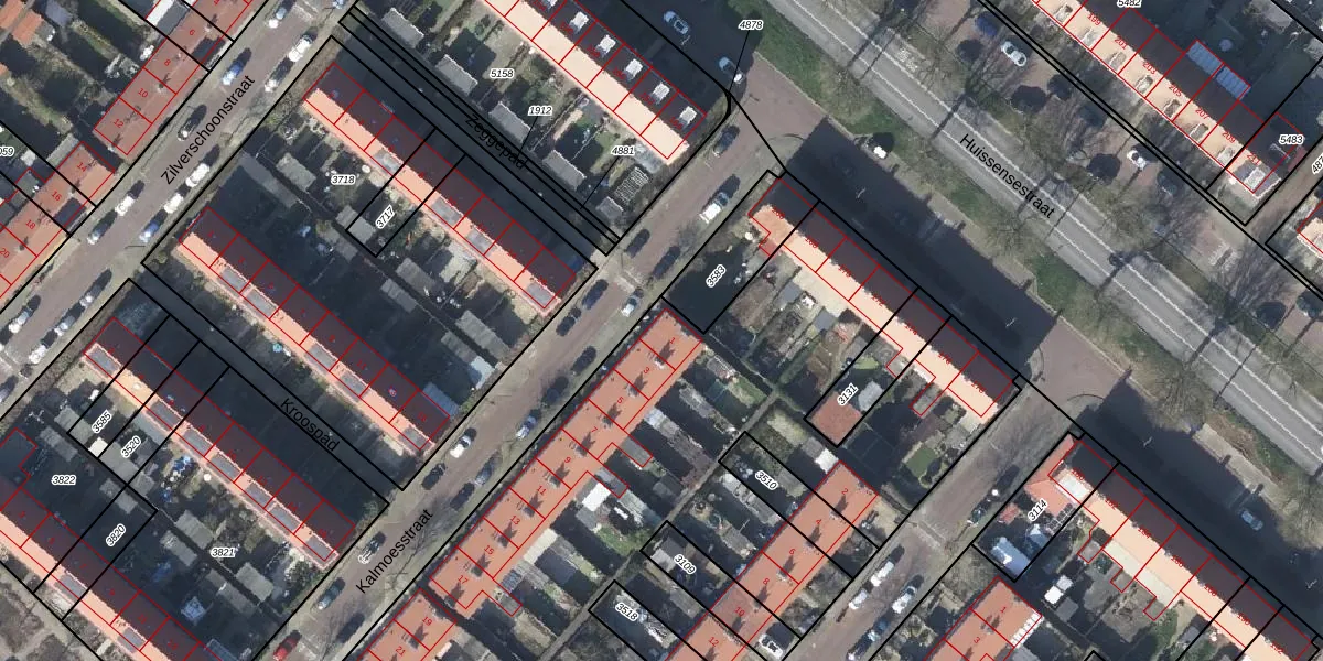 Het perceel waarop Kalmoesstraat 1 staat heeft een oppervlakte van 5337 m². Dit is een zeer groot perceel. De perceeloppervlakte wordt geregistreerd door het Kadaster. Gedetailleerde informatie over de maten van dit perceel kunt u vinden in het rapport Kadastrale kaart met maatvoering van Kalmoesstraat 1.