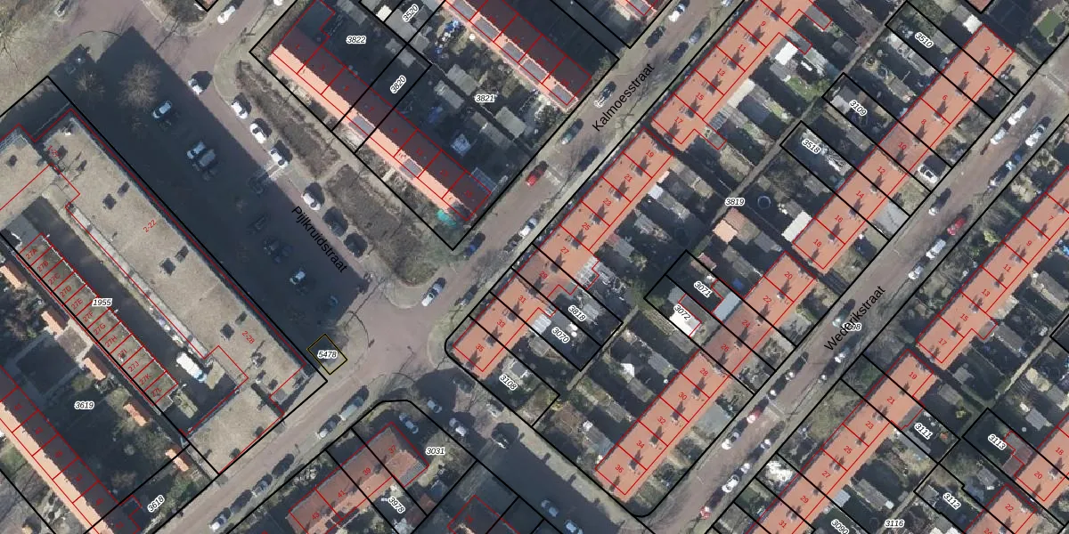 Gebruik de zoekbalk of klik op een perceel voor informatie over de adressen binnen dit perceel.