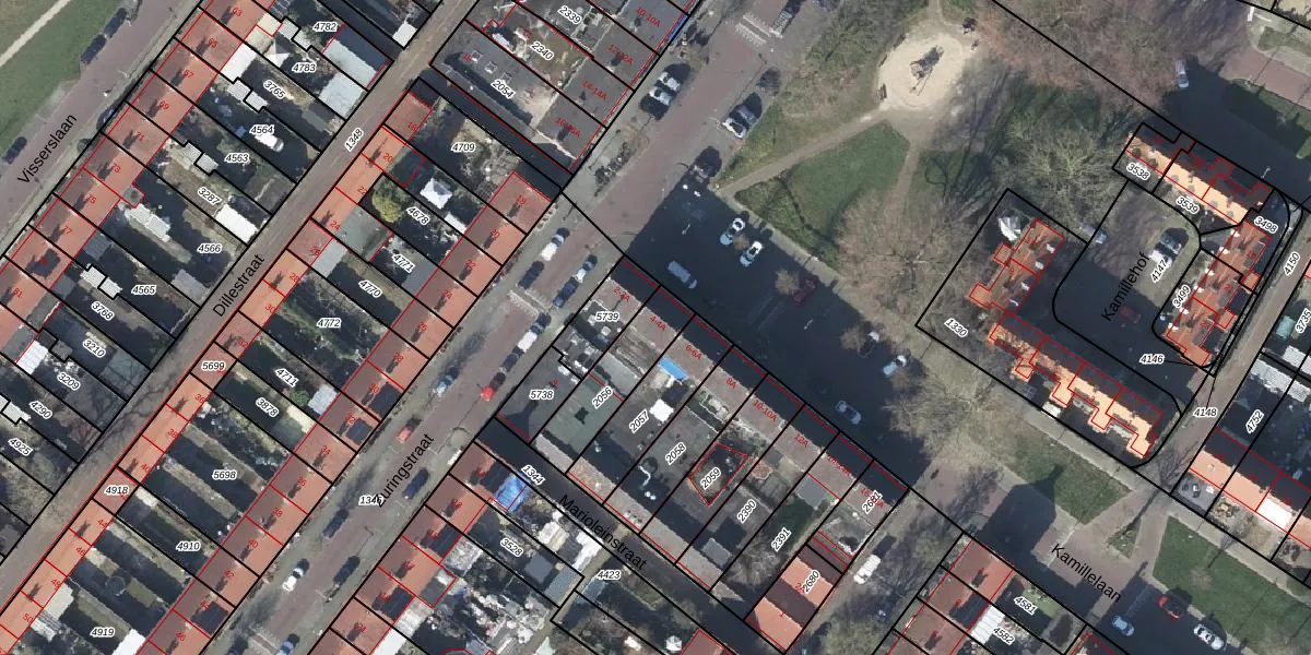 Het perceel waarop Kamillelaan 4-A staat heeft een oppervlakte van 223 m². Dit is een middelgroot perceel. De perceeloppervlakte wordt geregistreerd door het Kadaster. Gedetailleerde informatie over de maten van dit perceel kunt u vinden in het rapport Kadastrale kaart met maatvoering van Kamillelaan 4-A.