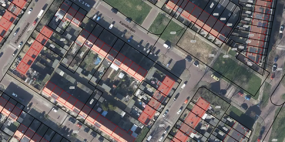 Het perceel waarop Kamillelaan 64 staat heeft een oppervlakte van 4714 m². Dit is een zeer groot perceel. De perceeloppervlakte wordt geregistreerd door het Kadaster. Gedetailleerde informatie over de maten van dit perceel kunt u vinden in het rapport Kadastrale kaart met maatvoering van Kamillelaan 64.