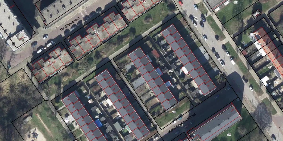 Het perceel waarop Karel Doormanstraat 12 staat heeft een oppervlakte van 3253 m². Dit is een zeer groot perceel. De perceeloppervlakte wordt geregistreerd door het Kadaster. Gedetailleerde informatie over de maten van dit perceel kunt u vinden in het rapport Kadastrale kaart met maatvoering van Karel Doormanstraat 12.