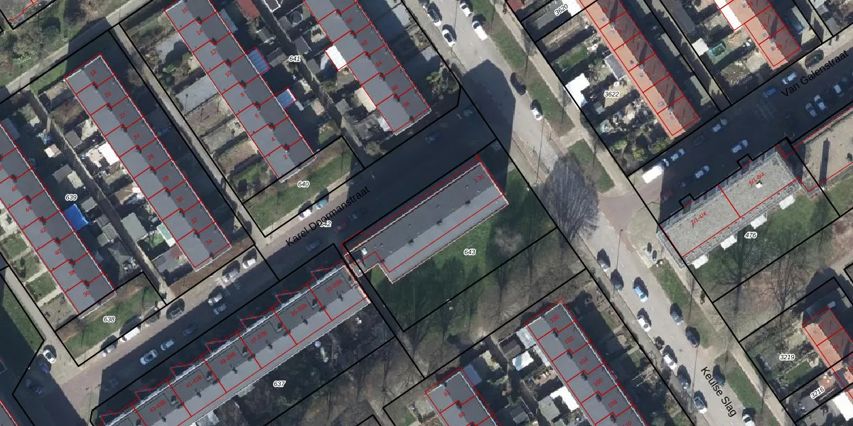 Het perceel waarop Karel Doormanstraat 15 staat heeft een oppervlakte van 1090 m². Dit is een zeer groot perceel. De perceeloppervlakte wordt geregistreerd door het Kadaster. Gedetailleerde informatie over de maten van dit perceel kunt u vinden in het rapport Kadastrale kaart met maatvoering van Karel Doormanstraat 15.