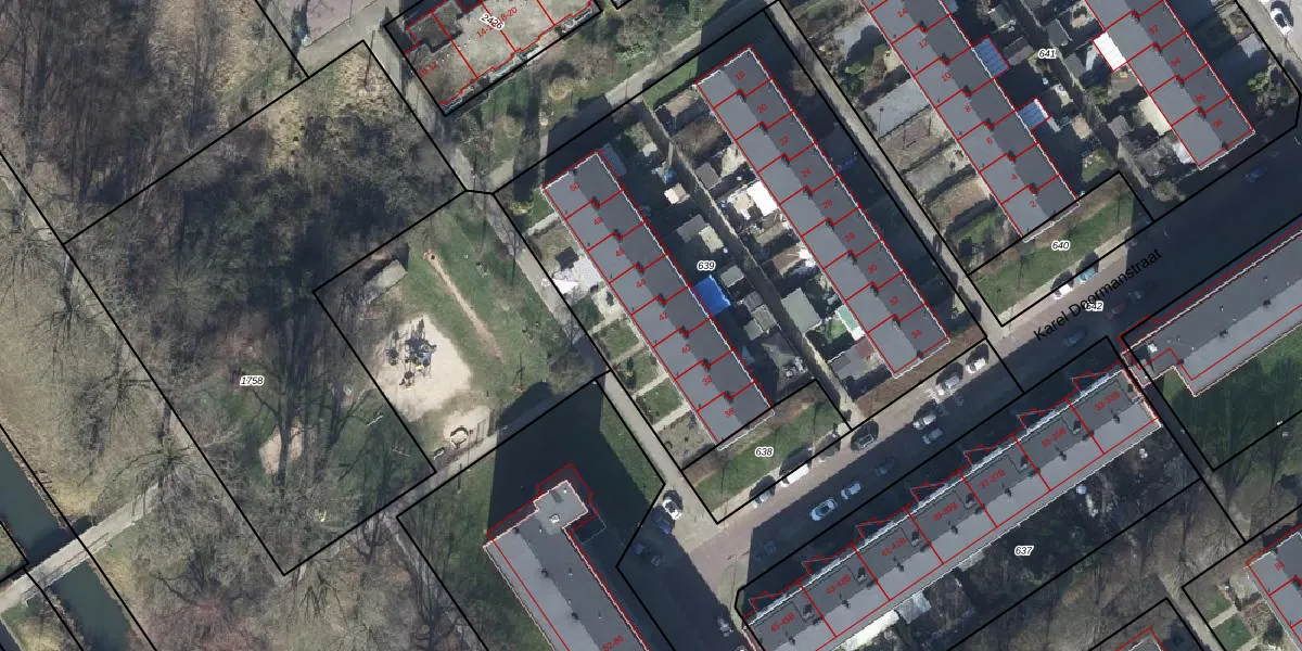 Het perceel waarop Karel Doormanstraat 42 staat heeft een oppervlakte van 2837 m². Dit is een zeer groot perceel. De perceeloppervlakte wordt geregistreerd door het Kadaster. Gedetailleerde informatie over de maten van dit perceel kunt u vinden in het rapport Kadastrale kaart met maatvoering van Karel Doormanstraat 42.