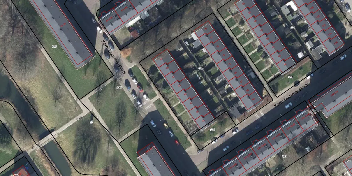 Karel Doormanstraat 53 is gelegen op kadastraal perceel AHM01T631. Deze kadastrale aanduiding is uniek en wordt gebruikt door het Kadaster om eigendomsrechten en andere zakelijke rechten vast te leggen. Het perceel maakt onderdeel uit van de kadastrale gemeente Arnhem.