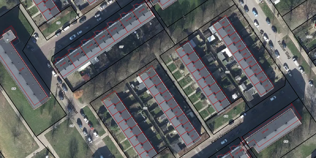 Het perceel waarop Karel Doormanstraat 77 staat heeft een oppervlakte van 2799 m². Dit is een zeer groot perceel. De perceeloppervlakte wordt geregistreerd door het Kadaster. Gedetailleerde informatie over de maten van dit perceel kunt u vinden in het rapport Kadastrale kaart met maatvoering van Karel Doormanstraat 77.