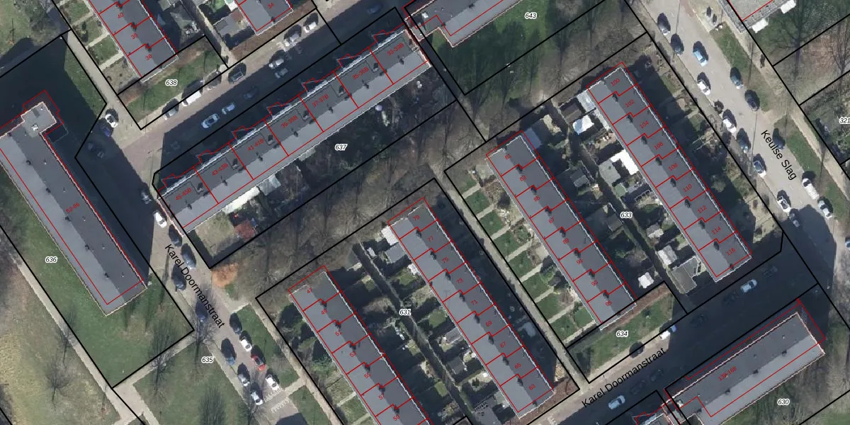 Het perceel waarop Karel Doormanstraat 79 staat heeft een oppervlakte van 2799 m². Dit is een zeer groot perceel. De perceeloppervlakte wordt geregistreerd door het Kadaster. Gedetailleerde informatie over de maten van dit perceel kunt u vinden in het rapport Kadastrale kaart met maatvoering van Karel Doormanstraat 79.