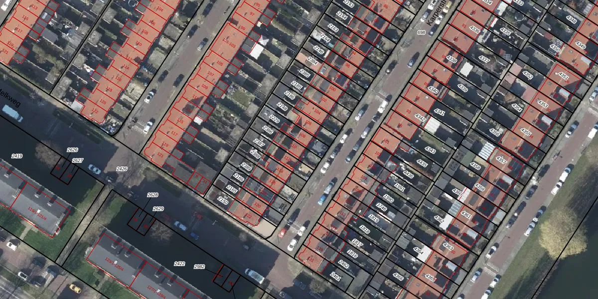 Gebruik de zoekbalk of klik op een perceel voor informatie over de adressen binnen dit perceel.