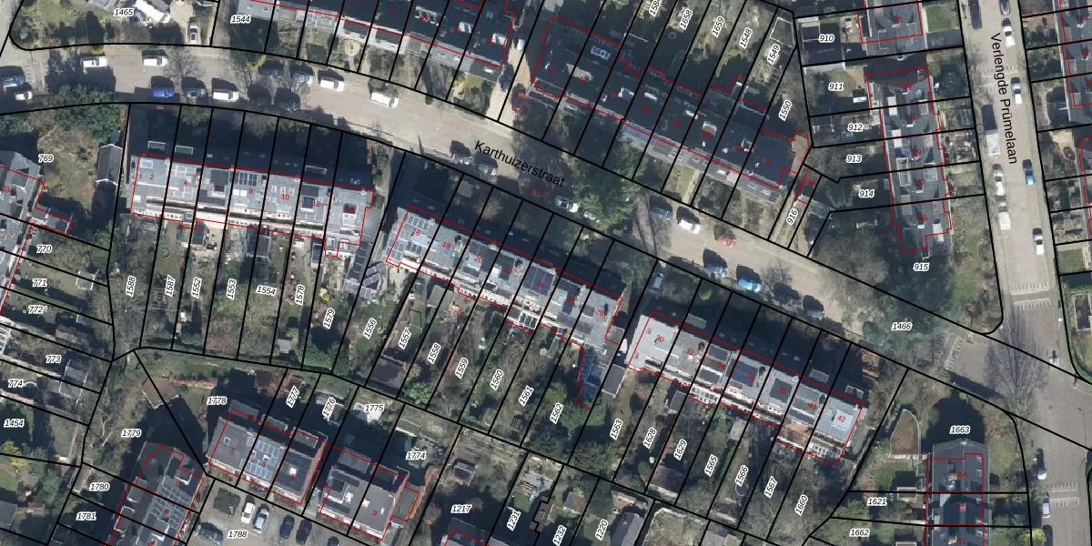 Het perceel waarop Karthuizerstraat 24 staat heeft een oppervlakte van 251 m². Dit is een middelgroot perceel. De perceeloppervlakte wordt geregistreerd door het Kadaster. Gedetailleerde informatie over de maten van dit perceel kunt u vinden in het rapport Kadastrale kaart met maatvoering van Karthuizerstraat 24.