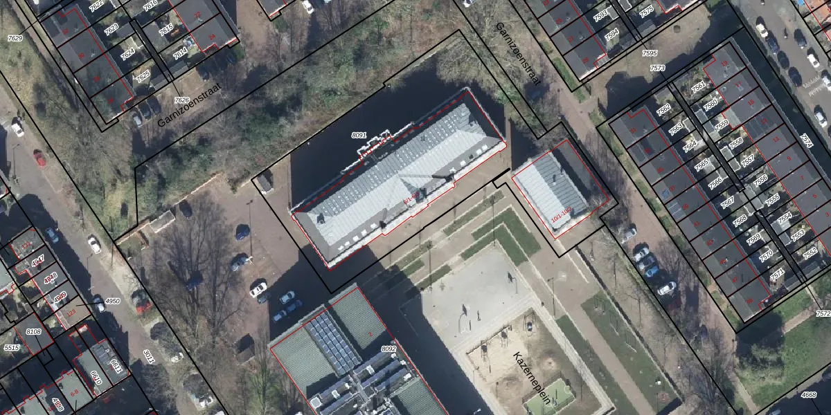 Het perceel waarop Kazerneplein 6-1 staat heeft een oppervlakte van 2580 m². Dit is een zeer groot perceel. De perceeloppervlakte wordt geregistreerd door het Kadaster. Gedetailleerde informatie over de maten van dit perceel kunt u vinden in het rapport Kadastrale kaart met maatvoering van Kazerneplein 6-1.