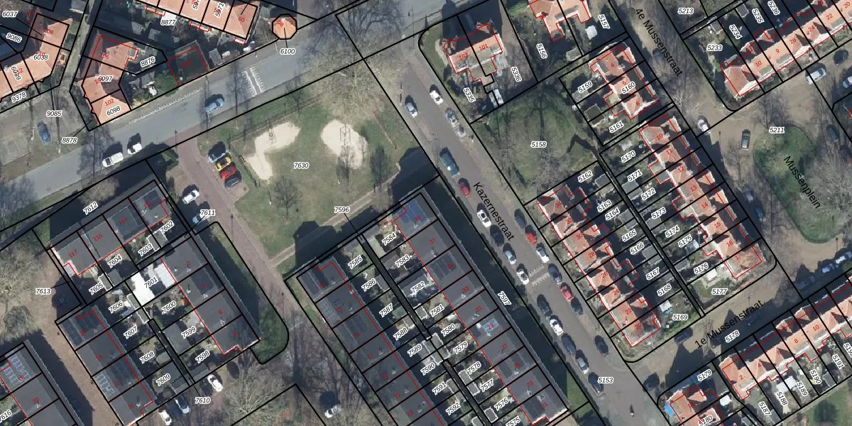 Het perceel waarop Kazernestraat 39 staat heeft een oppervlakte van 125 m². Dit is een middelgroot perceel. De perceeloppervlakte wordt geregistreerd door het Kadaster. Gedetailleerde informatie over de maten van dit perceel kunt u vinden in het rapport Kadastrale kaart met maatvoering van Kazernestraat 39.