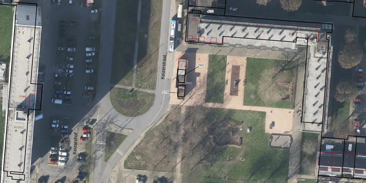 Gebruik de zoekbalk of klik op een perceel voor informatie over de adressen binnen dit perceel.