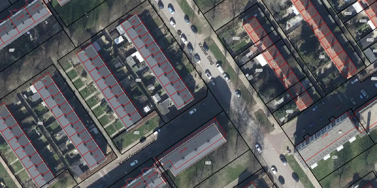 Het perceel waarop Keulse Slag 116 staat heeft een oppervlakte van 3203 m². Dit is een zeer groot perceel. De perceeloppervlakte wordt geregistreerd door het Kadaster. Gedetailleerde informatie over de maten van dit perceel kunt u vinden in het rapport Kadastrale kaart met maatvoering van Keulse Slag 116.