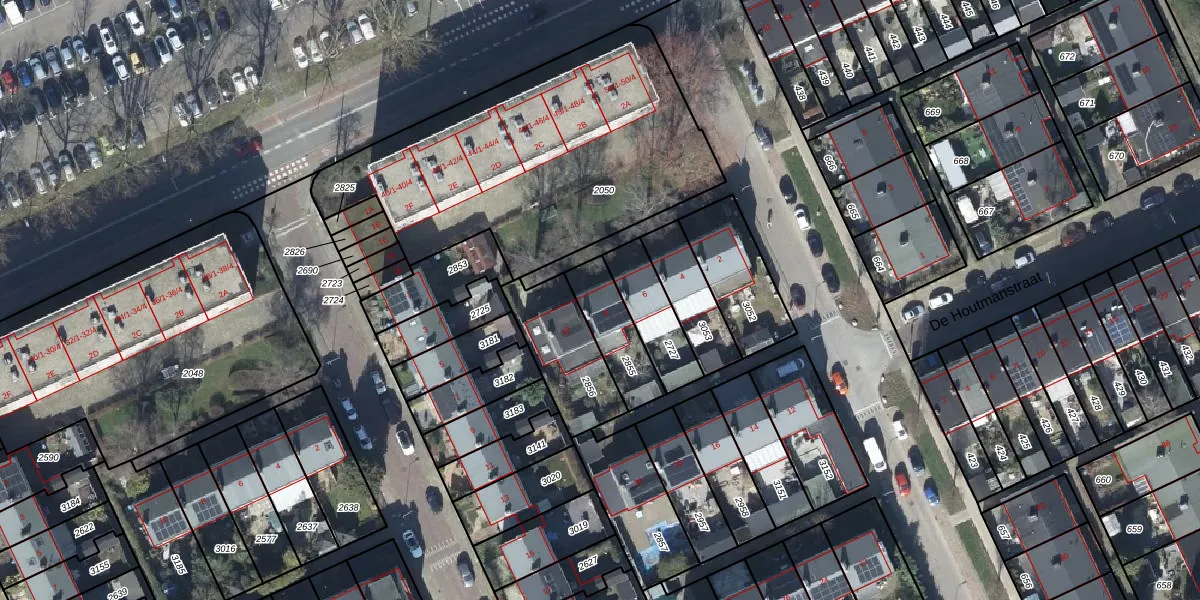 Gebruik de zoekbalk of klik op een perceel voor informatie over de adressen binnen dit perceel.
