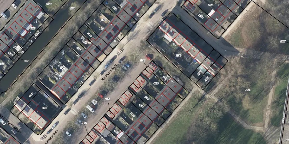 Het perceel waarop Keurvorstlaan 27-C staat heeft een oppervlakte van 431 m². Dit is een groot perceel. De perceeloppervlakte wordt geregistreerd door het Kadaster. Gedetailleerde informatie over de maten van dit perceel kunt u vinden in het rapport Kadastrale kaart met maatvoering van Keurvorstlaan 27-C.