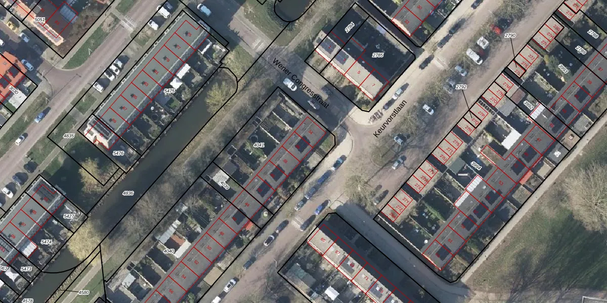 Het perceel waarop Keurvorstlaan 36 staat heeft een oppervlakte van 877 m². Dit is een groot perceel. De perceeloppervlakte wordt geregistreerd door het Kadaster. Gedetailleerde informatie over de maten van dit perceel kunt u vinden in het rapport Kadastrale kaart met maatvoering van Keurvorstlaan 36.