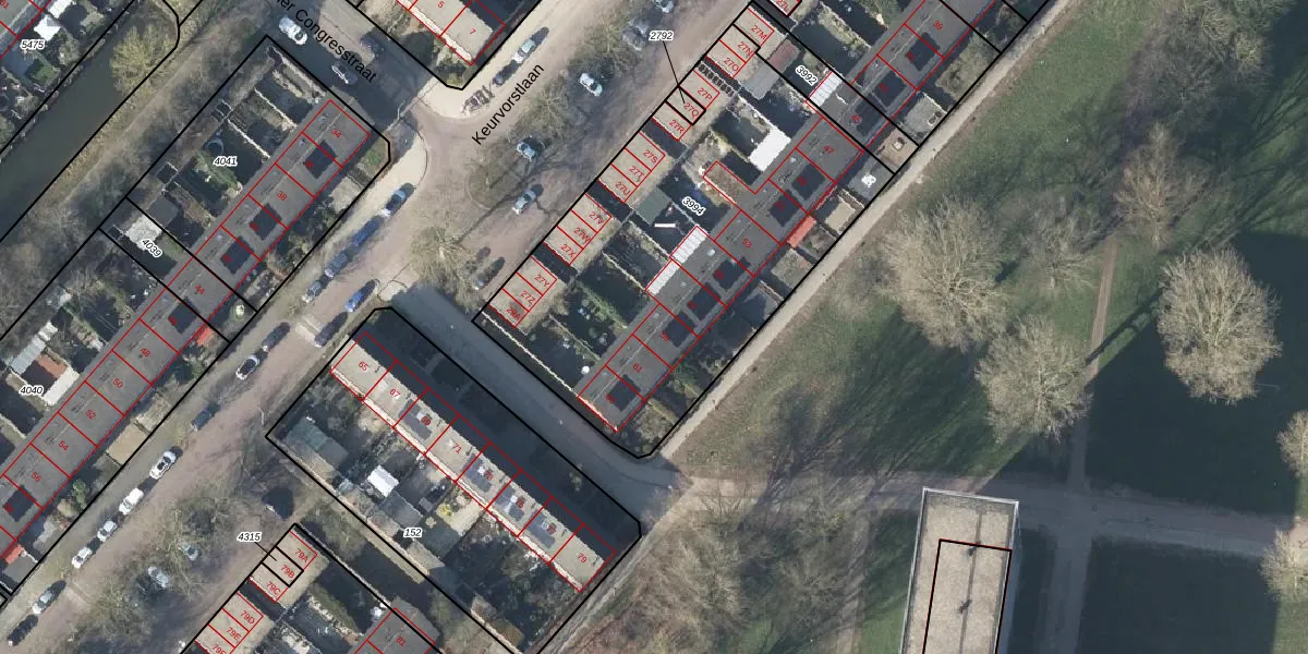 Het perceel waarop Keurvorstlaan 59 staat heeft een oppervlakte van 1999 m². Dit is een zeer groot perceel. De perceeloppervlakte wordt geregistreerd door het Kadaster. Gedetailleerde informatie over de maten van dit perceel kunt u vinden in het rapport Kadastrale kaart met maatvoering van Keurvorstlaan 59.