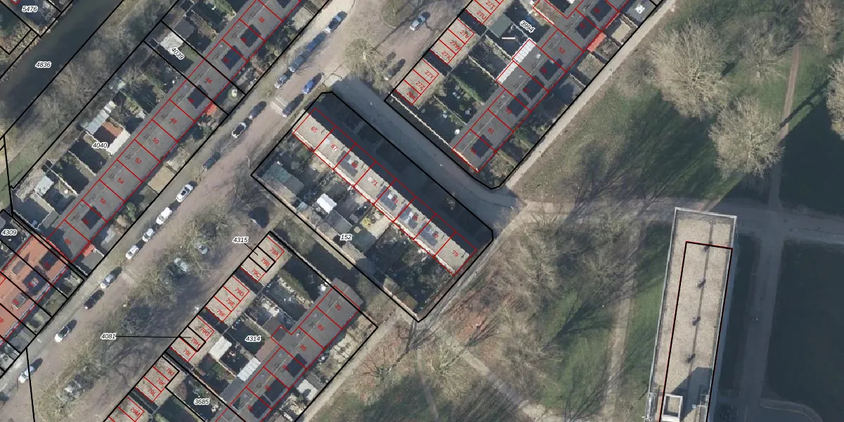 Het adres is gelegen op perceel 152 in de sectie W en de kadastrale gemeente Arnhem. De kadastrale aanduiding is aldus AHM01-W-152. De gemiddelde perceelgrootte in Arnhem is 2519,97 m². Dit perceel is kleiner: de perceeloppervlakte bedraagt 1440 m². De grootste perceeloppervlakte in de kadastrale gemeente is 1,57 km². De kleinste oppervlakte bedraagt 0 m². Op het perceel liggen in totaal 8 adressen. In de Basisregistratie Kadaster (BRK) werden de grenzen van het perceel geregistreerd op 08-12-2005.