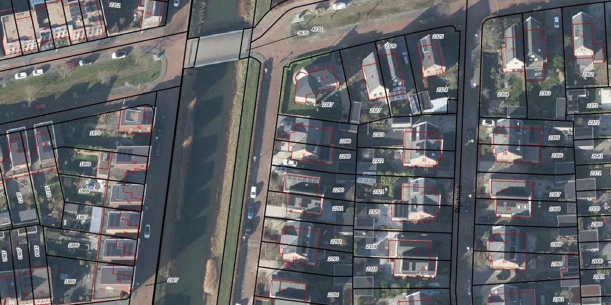Gebruik de zoekbalk of klik op een perceel voor informatie over de adressen binnen dit perceel.