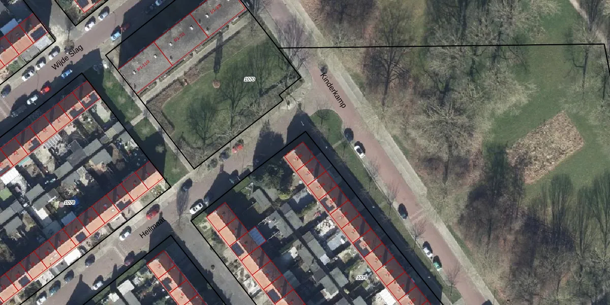 Het perceel waarop Kinderkamp 100 staat heeft een oppervlakte van 3659 m². Dit is een zeer groot perceel. De perceeloppervlakte wordt geregistreerd door het Kadaster. Gedetailleerde informatie over de maten van dit perceel kunt u vinden in het rapport Kadastrale kaart met maatvoering van Kinderkamp 100.