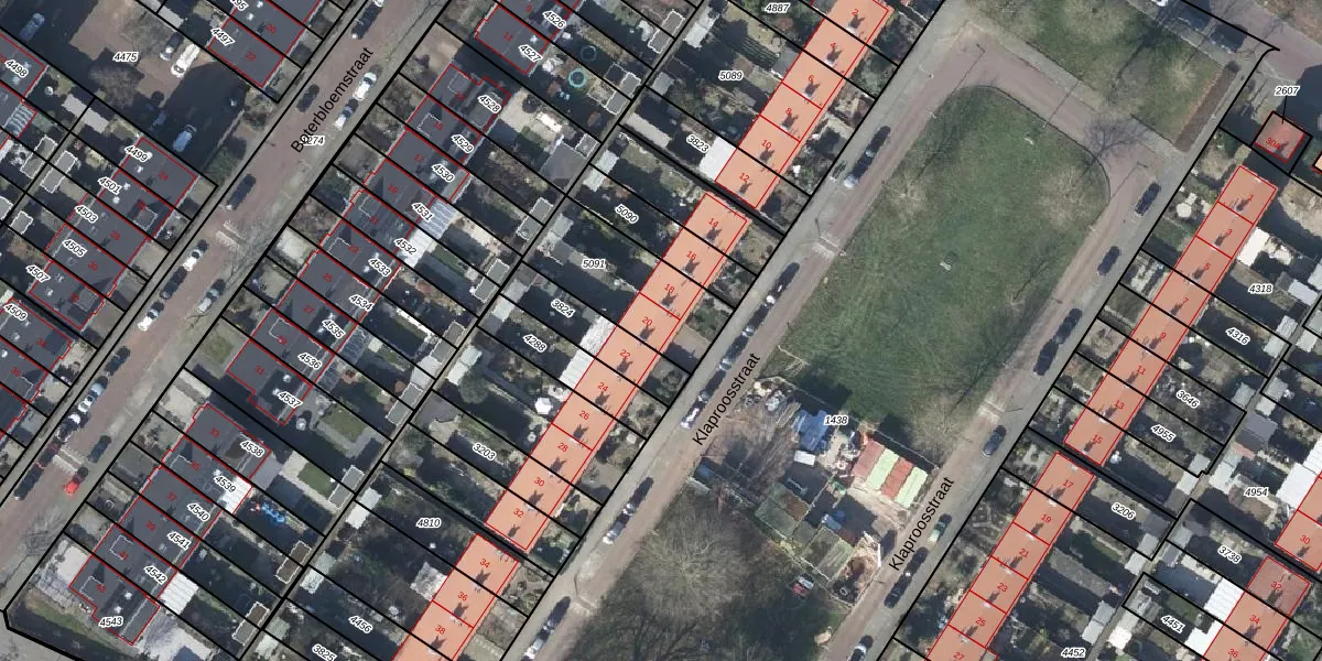 Het perceel waarop Klaproosstraat 20 staat heeft een oppervlakte van 3250 m². Dit is een zeer groot perceel. De perceeloppervlakte wordt geregistreerd door het Kadaster. Gedetailleerde informatie over de maten van dit perceel kunt u vinden in het rapport Kadastrale kaart met maatvoering van Klaproosstraat 20.