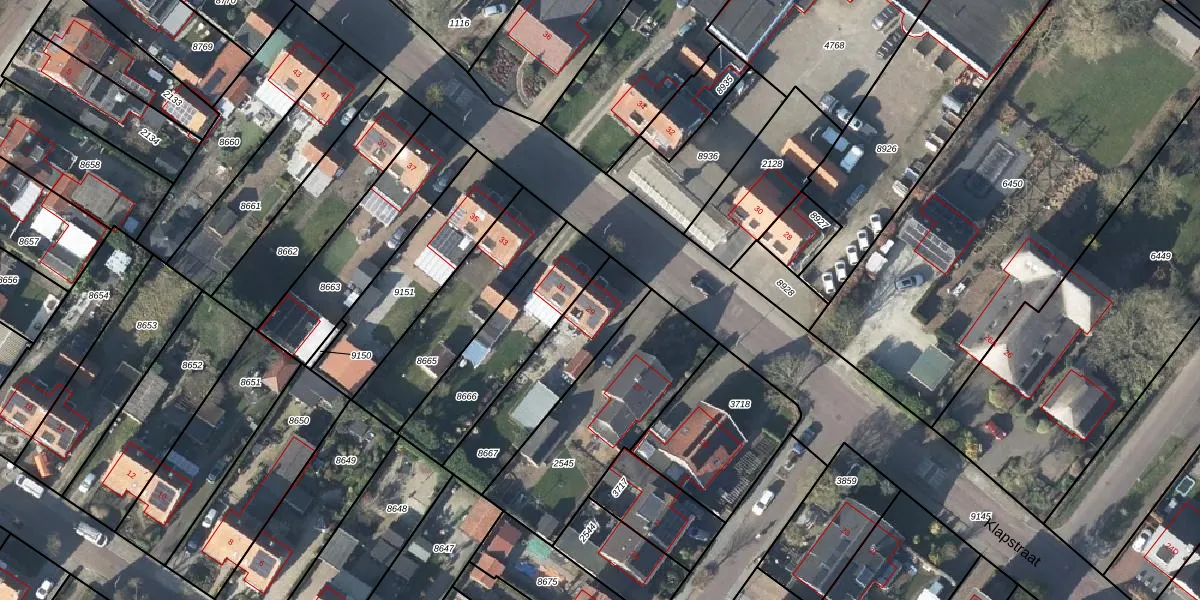 Het perceel waarop Klapstraat 29 staat heeft een oppervlakte van 380 m². Dit is een groot perceel. De perceeloppervlakte wordt geregistreerd door het Kadaster. Gedetailleerde informatie over de maten van dit perceel kunt u vinden in het rapport Kadastrale kaart met maatvoering van Klapstraat 29.