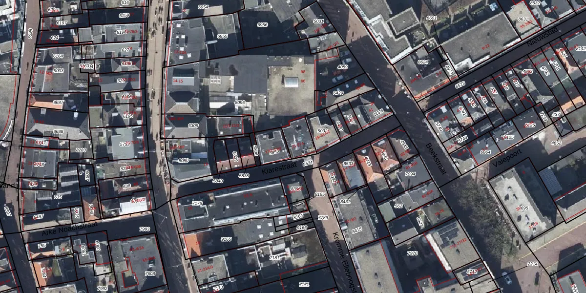 Het perceel waarop Klarestraat 21 staat heeft een oppervlakte van 1424 m². Dit is een zeer groot perceel. De perceeloppervlakte wordt geregistreerd door het Kadaster. Gedetailleerde informatie over de maten van dit perceel kunt u vinden in het rapport Kadastrale kaart met maatvoering van Klarestraat 21.