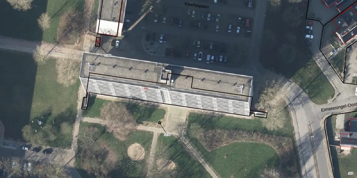 Het perceel waarop Kleefseplein 125 staat heeft een oppervlakte van 1169 m². Dit is een zeer groot perceel. De perceeloppervlakte wordt geregistreerd door het Kadaster. Gedetailleerde informatie over de maten van dit perceel kunt u vinden in het rapport Kadastrale kaart met maatvoering van Kleefseplein 125.