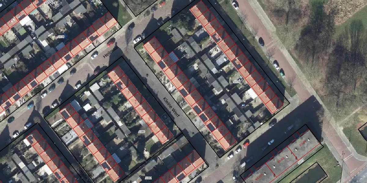 Het perceel waarop Kleine Werf 11 staat heeft een oppervlakte van 3659 m². Dit is een zeer groot perceel. De perceeloppervlakte wordt geregistreerd door het Kadaster. Gedetailleerde informatie over de maten van dit perceel kunt u vinden in het rapport Kadastrale kaart met maatvoering van Kleine Werf 11.