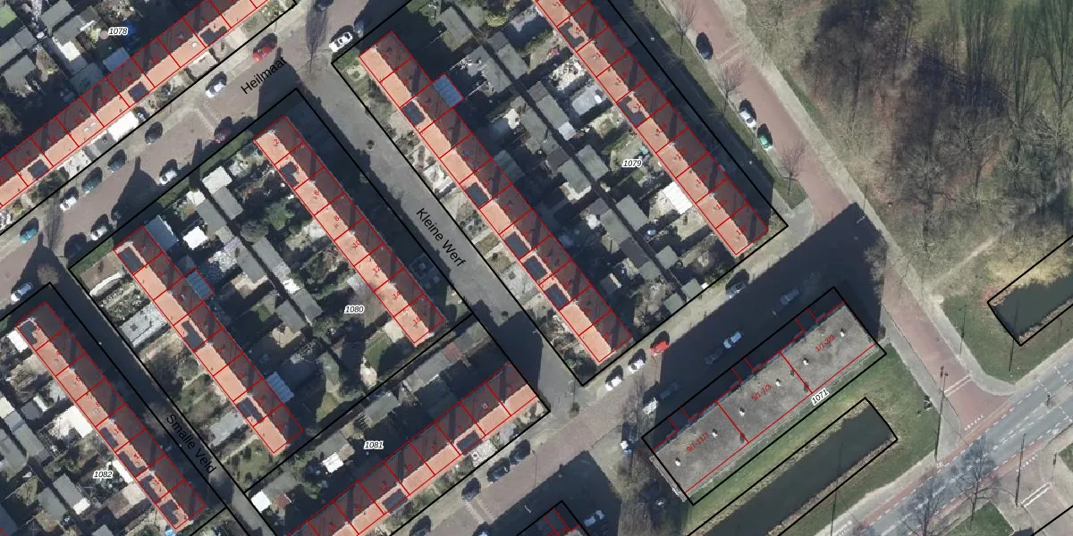 Het perceel waarop Kleine Werf 17 staat heeft een oppervlakte van 3659 m². Dit is een zeer groot perceel. De perceeloppervlakte wordt geregistreerd door het Kadaster. Gedetailleerde informatie over de maten van dit perceel kunt u vinden in het rapport Kadastrale kaart met maatvoering van Kleine Werf 17.