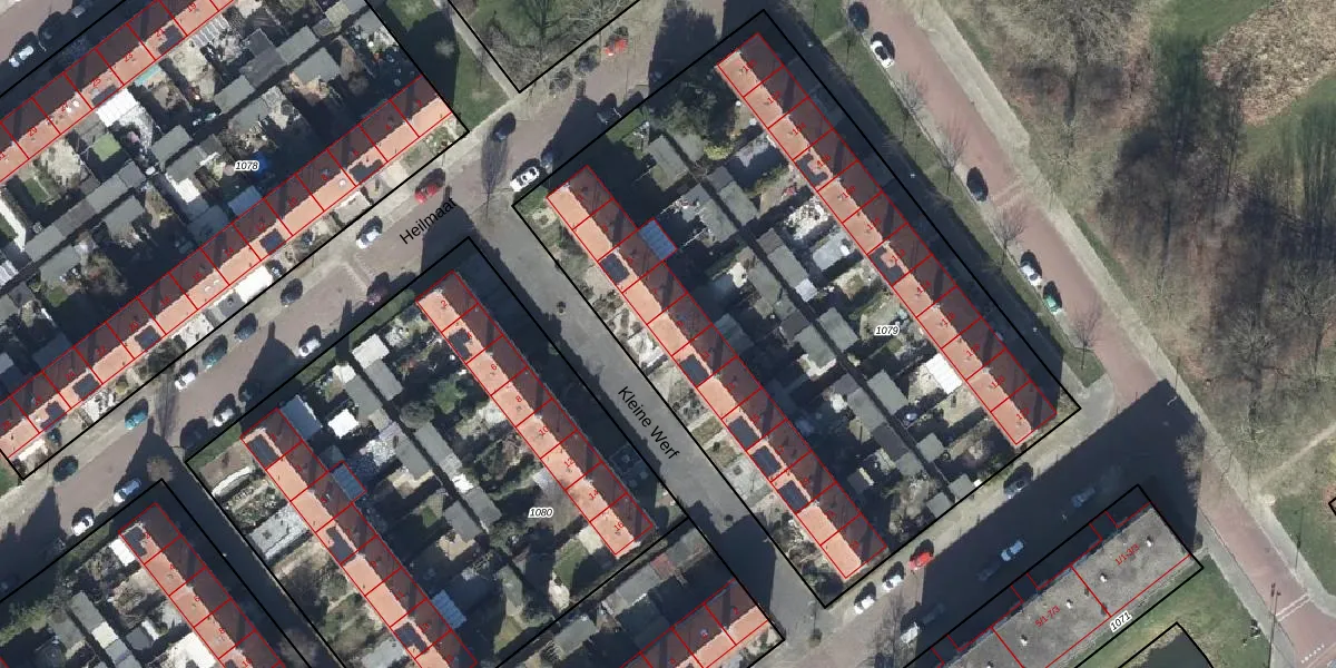 Het perceel waarop Kleine Werf 9 staat heeft een oppervlakte van 3659 m². Dit is een zeer groot perceel. De perceeloppervlakte wordt geregistreerd door het Kadaster. Gedetailleerde informatie over de maten van dit perceel kunt u vinden in het rapport Kadastrale kaart met maatvoering van Kleine Werf 9.