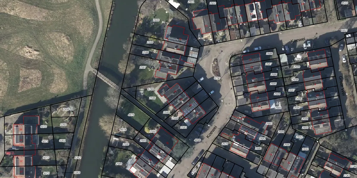Het perceel waarop Koewei 43 staat heeft een oppervlakte van 376 m². Dit is een groot perceel. De perceeloppervlakte wordt geregistreerd door het Kadaster. Gedetailleerde informatie over de maten van dit perceel kunt u vinden in het rapport Kadastrale kaart met maatvoering van Koewei 43.