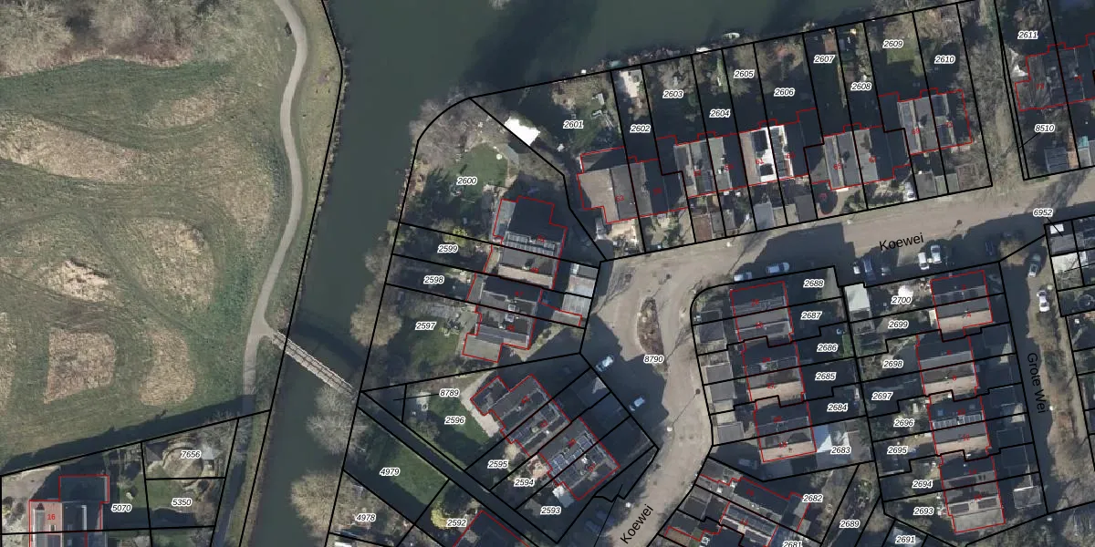Het perceel waarop Koewei 49 staat heeft een oppervlakte van 216 m². Dit is een middelgroot perceel. De perceeloppervlakte wordt geregistreerd door het Kadaster. Gedetailleerde informatie over de maten van dit perceel kunt u vinden in het rapport Kadastrale kaart met maatvoering van Koewei 49.