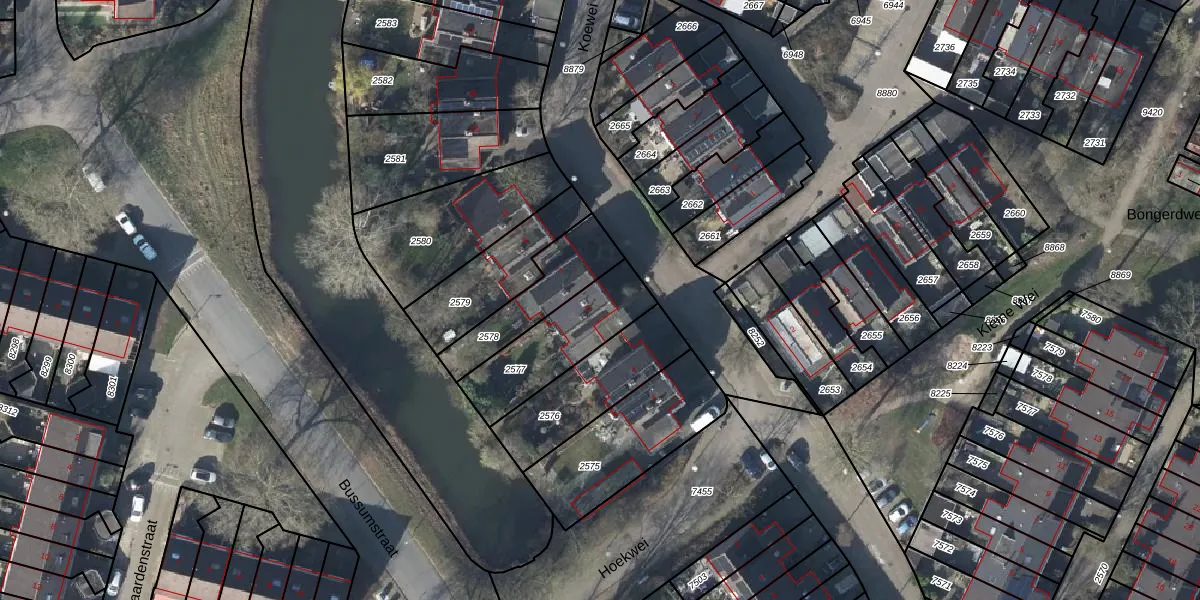 Gebruik de zoekbalk of klik op een perceel voor informatie over de adressen binnen dit perceel.