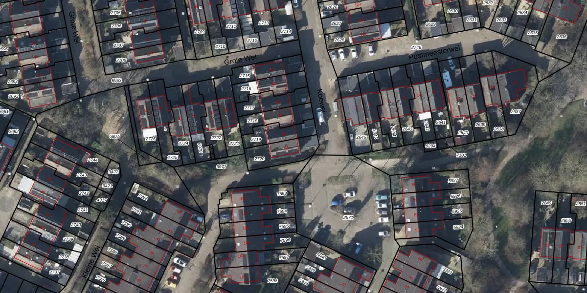 Gebruik de zoekbalk of klik op een perceel voor informatie over de adressen binnen dit perceel.