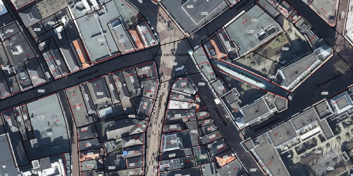 Het perceel waarop Koningstraat 1 staat heeft een oppervlakte van 94 m². Dit is een klein perceel. De perceeloppervlakte wordt geregistreerd door het Kadaster. Gedetailleerde informatie over de maten van dit perceel kunt u vinden in het rapport Kadastrale kaart met maatvoering van Koningstraat 1.