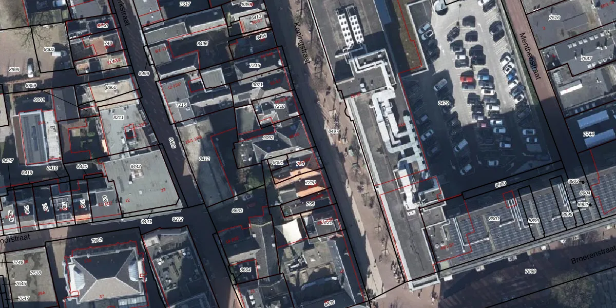 Het perceel waarop Koningstraat 47-1 staat heeft een oppervlakte van 102 m². Dit is een middelgroot perceel. De perceeloppervlakte wordt geregistreerd door het Kadaster. Gedetailleerde informatie over de maten van dit perceel kunt u vinden in het rapport Kadastrale kaart met maatvoering van Koningstraat 47-1.