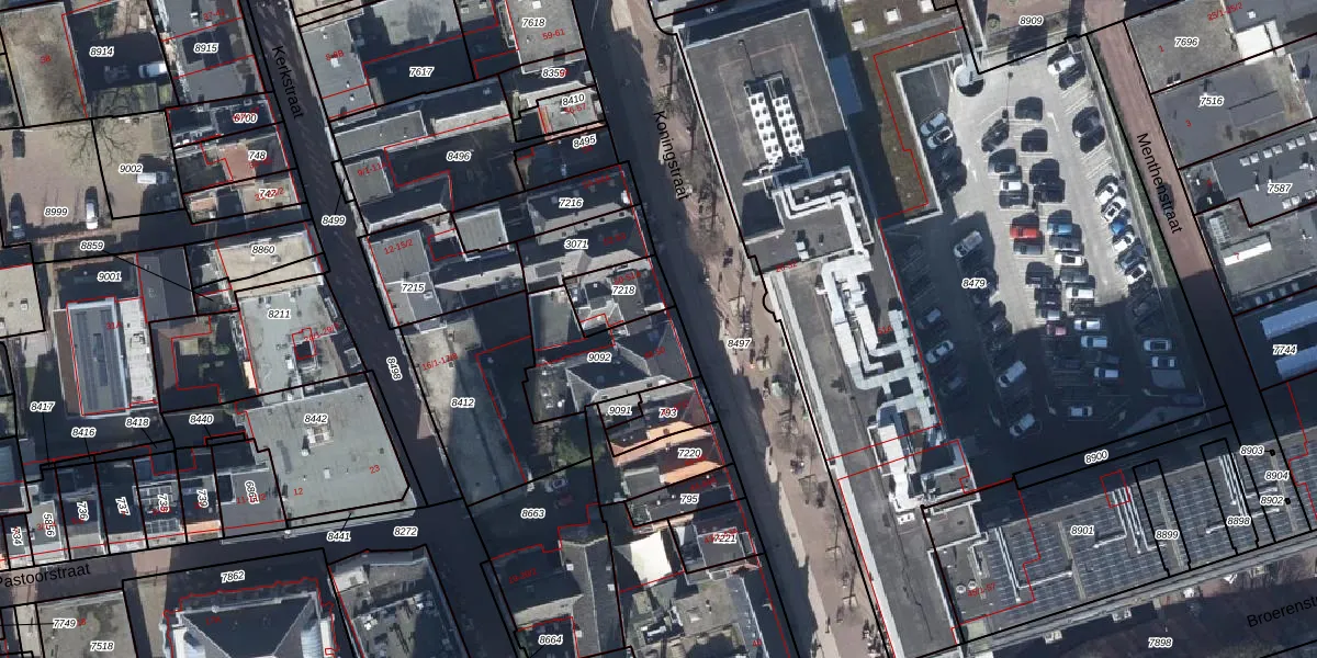 Het perceel waarop Koningstraat 50 staat heeft een oppervlakte van 333 m². Dit is een groot perceel. De perceeloppervlakte wordt geregistreerd door het Kadaster. Gedetailleerde informatie over de maten van dit perceel kunt u vinden in het rapport Kadastrale kaart met maatvoering van Koningstraat 50.