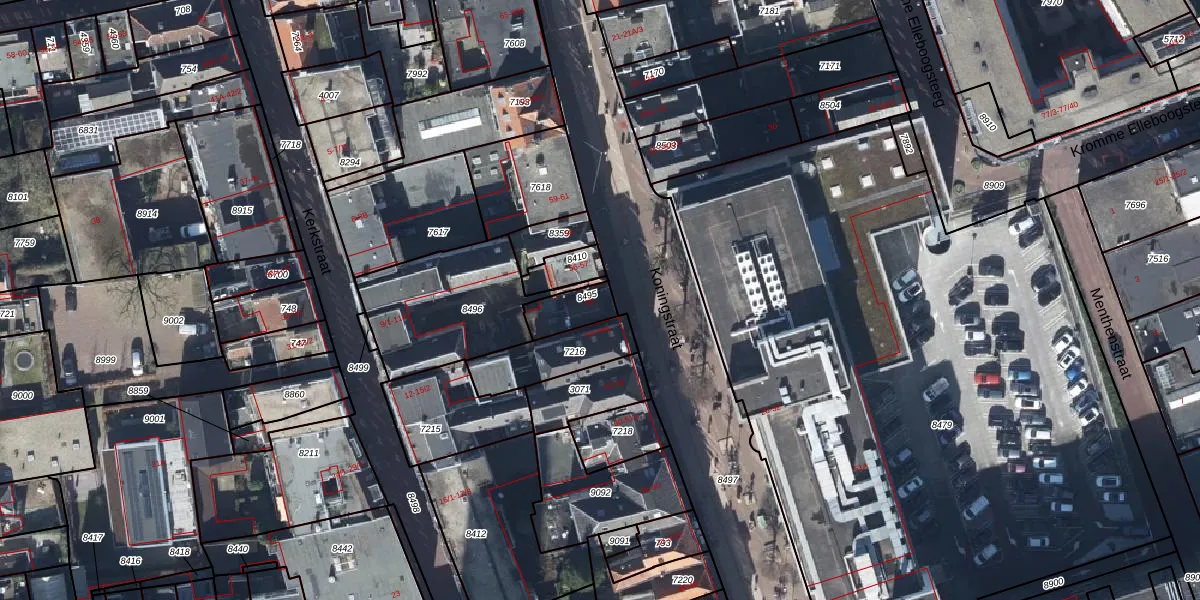 Het perceel waarop Koningstraat 55 staat heeft een oppervlakte van 95 m². Dit is een klein perceel. De perceeloppervlakte wordt geregistreerd door het Kadaster. Gedetailleerde informatie over de maten van dit perceel kunt u vinden in het rapport Kadastrale kaart met maatvoering van Koningstraat 55.