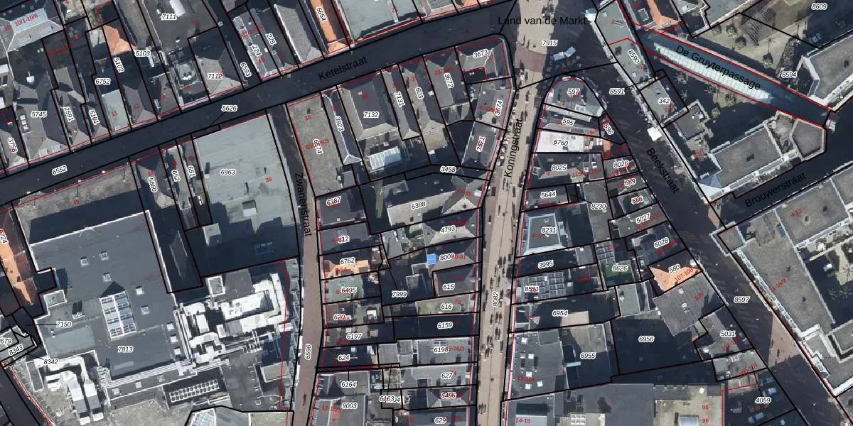 Het perceel waarop Koningstraat 84-5 staat heeft een oppervlakte van 309 m². Dit is een groot perceel. De perceeloppervlakte wordt geregistreerd door het Kadaster. Gedetailleerde informatie over de maten van dit perceel kunt u vinden in het rapport Kadastrale kaart met maatvoering van Koningstraat 84-5.